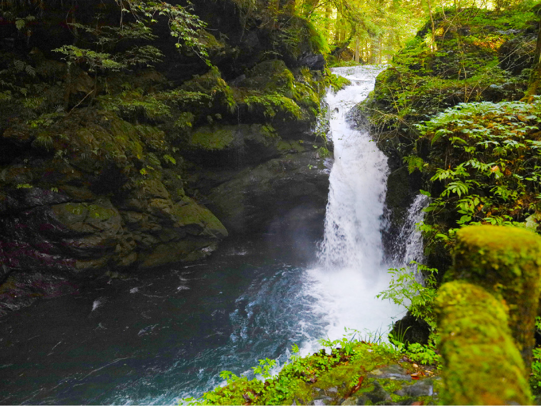 今もこの場所には、岩の間を流れる静かな滝と澄んだ水音が残り、不思議と背筋が伸びるような空気が漂います。